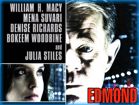 Following the structure of the medieval morality play of an Everyman character drifting through dark vignettes on the road to salvation, screenwriter David Mamet adapts his one-time confrontational play Edmond to the screen. Businessman Edmond (William H. Macy) rejects the slow-grinding boredom of life with his consumerist wife (Rebecca Pidgeon) and spends a long dark night of the soul in cinema’s fantasy playground version of Los Angeles’s sex district. Like Eyes Wide Shut, it’s not “reality,” but a strange and non-naturalistic, dare I say Brechtian, version of Edmond’s thoughts and fears. But the comic masterstroke of Eyes Wide Shut was its presentation of Tom Cruise going out on the town and failing, over and over again, to get laid. When you switch Cruise with, say, William H. Macy, it’s got a different connotation. As Macy turns bright red with indignation at being ripped off by a bunch of evil women (Bai Ling as a stripper, Denise Richards as a b-girl, Mena Suvari as a whore, and Julia Stiles as an pill-popping neurotically insane actress/waitress), savage knife-wielding black men (Dulé Hill as a card hustler, Lionel Mark Smith as a pimp, Bokeem Woodbine as a prisoner), and cheating gays and Jews, you get what you expect: the nerdy little macho man finally blows his top, catastrophe ensues, then Robert Bly style man’s man wisdom follows. (Why don’t they just call the movie Bitches Leave?)